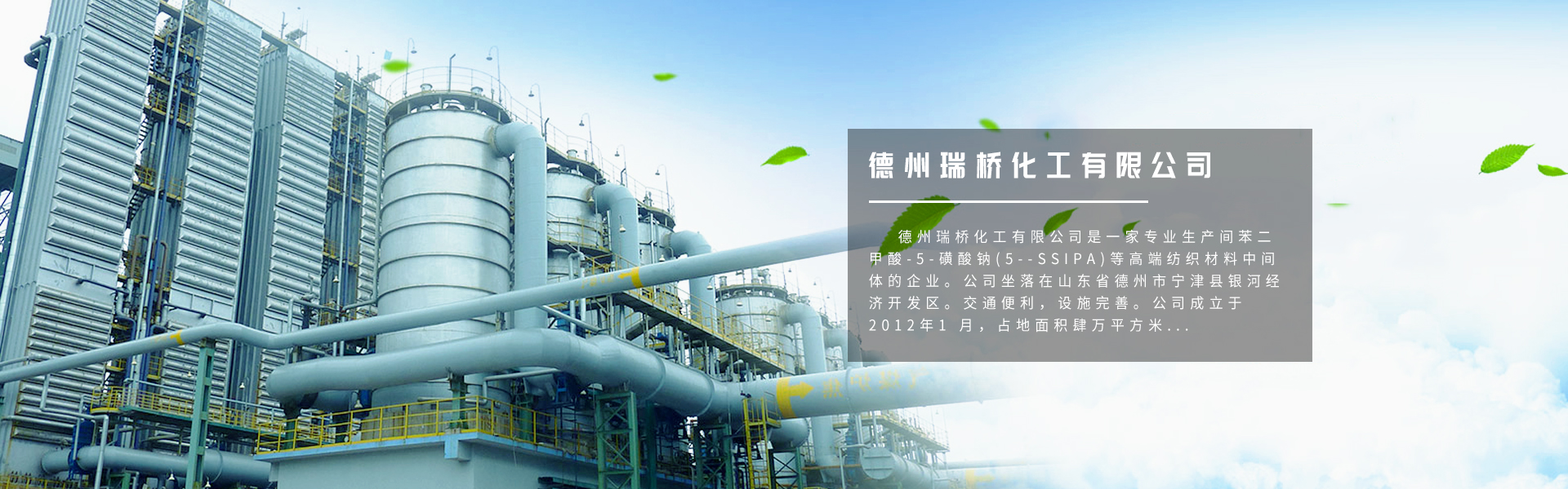 德州瑞橋化工有限公司是一家專(zhuān)業(yè)生產(chǎn)間苯二甲酸-5-磺酸鈉(5-SSIPA)等高端紡織材料中間體的企業(yè)。公司坐落在山東省德州市 寧津縣銀河經(jīng)濟(jì)開(kāi)發(fā)區(qū)。交通便利,設(shè)施完善。公司成立于2012年1 月,占地面積肆萬(wàn)平方米。是目前專(zhuān)業(yè)技術(shù)力量強(qiáng)的高端紡織材料中間體生產(chǎn)與研發(fā)企業(yè)。年產(chǎn)間苯二甲酸-5-磺酸鈉8000 噸。成功進(jìn)入陽(yáng)離子直紡和海島纖維市場(chǎng),以過(guò)硬的質(zhì)量取得了良好的信譽(yù),獲得客戶(hù)好評(píng),F(xiàn)有客戶(hù)日本東麗、恒逸集團(tuán)、新鳳鳴集團(tuán)、 江蘇立新化纖、浙江東華纖維、安徽皖維等公司。公司生產(chǎn)的高端紡織材料中間體,是紡織產(chǎn)品不可或缺的添加成分,它提高了紡織物的 著色力度及產(chǎn)品的柔韌度...