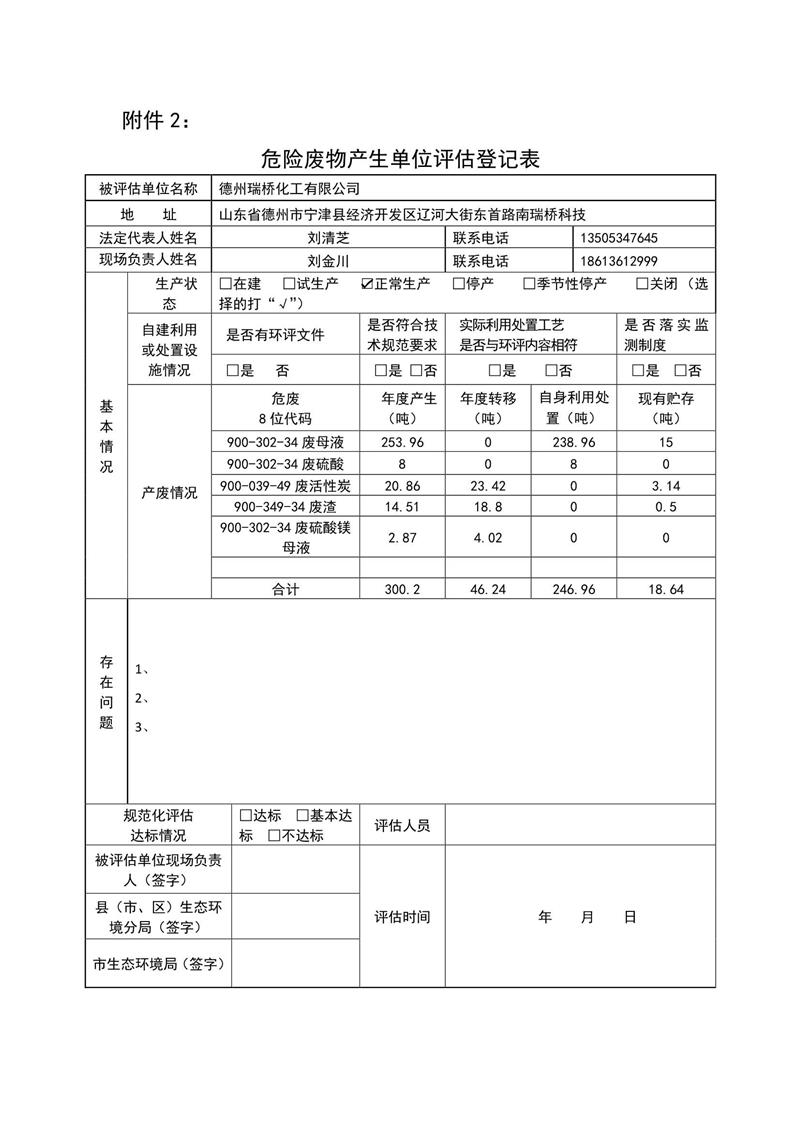 德州瑞橋化工有限公司危廢公示